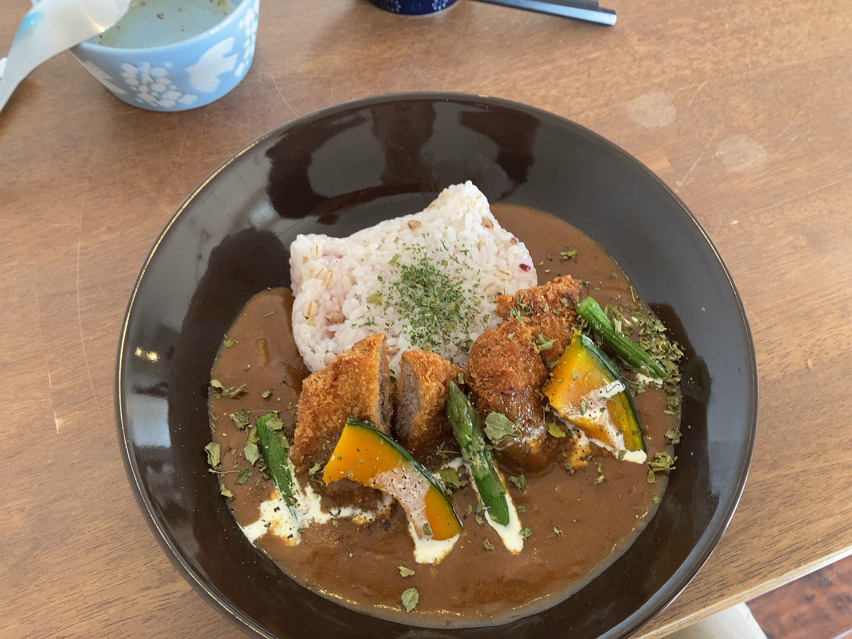 メインのヒレカツカレーは、厚過ぎず薄過ぎない厚みのヒレカツが柔らかい。アスパラガスも添えられていてカレー好きライターには、ちょっと新鮮。(ちょっと、が続きますね 笑)