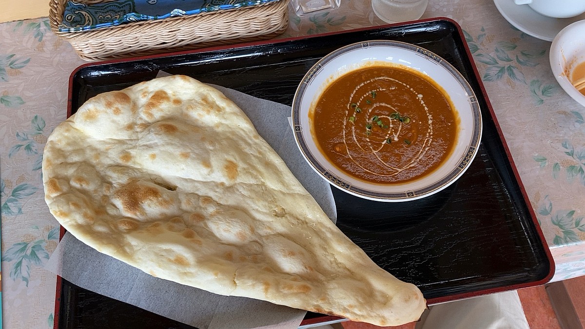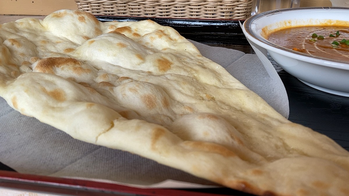ナンをよく見ると、表面は油っぽく見えない。手でちぎると確かに手は汚れなく、それでいてふわっともちっとした嚙み心地。